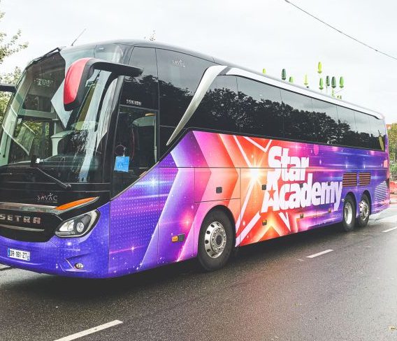 Mise en place d’une équipe de pose et réalisation du covering complet pour le bus dédié à l’émission Star Academy diffusé sur TF1.