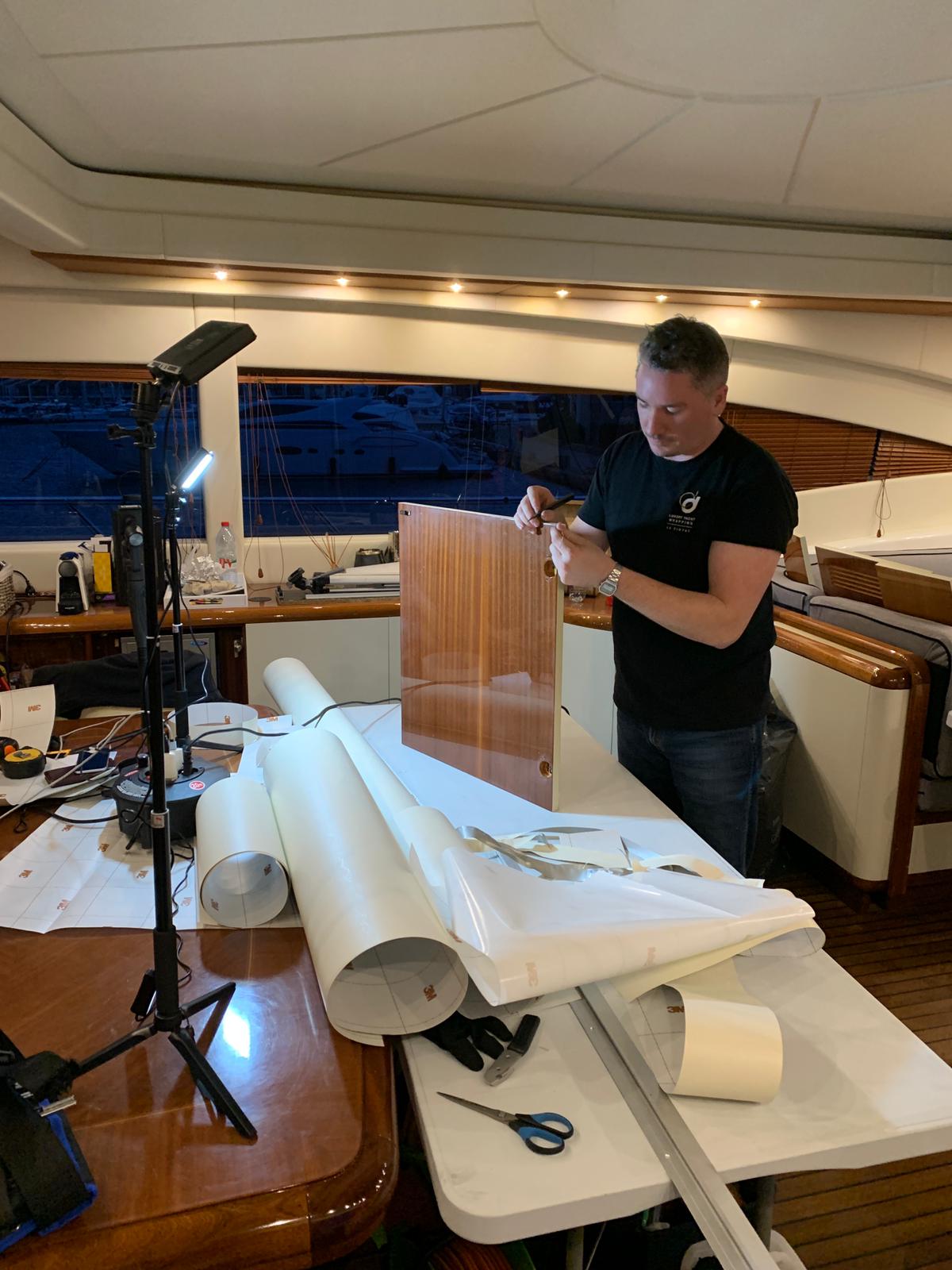 Rénovation meuble TV yacht renovation yacht rénovation intéreur yacht refit yacht 3M Di-Noc